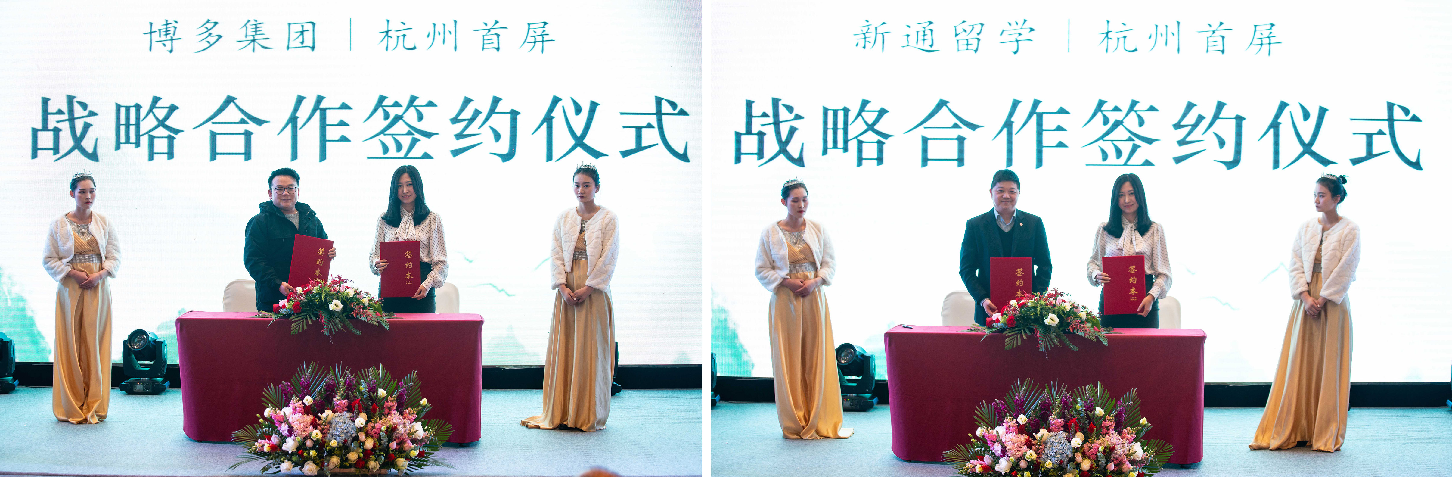緊接著,杭州首屏科技有限公司高源先生也依次與浙江新通留學有限公司、浙江博多投資管理有限公司兩家優(yōu)質(zhì)品牌企業(yè)簽訂了長期戰(zhàn)略合作協(xié)議。