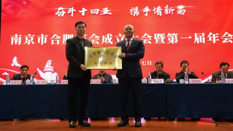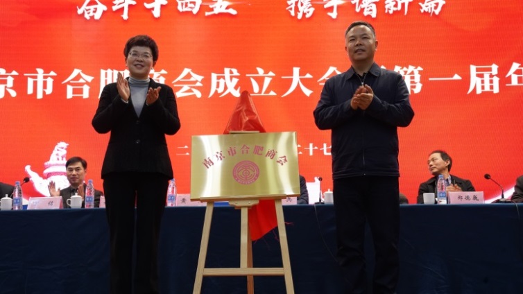 南京市政協(xié)副主席黃河,合肥市政協(xié)副主席、市工商聯(lián)主席姚亞妹現(xiàn)場共同為南京市合肥商會(huì)揭牌。