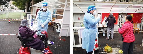 由于近期南京接連不斷的陰雨以及驟降的氣溫,給市民采集核酸帶來一些不便,面對個別市民因排隊(duì)時間久而產(chǎn)生的抱怨與不理解,他們細(xì)心講解、耐心開導(dǎo)、貼心安撫大家的情緒,確保核酸檢測工作有條不紊地進(jìn)行。