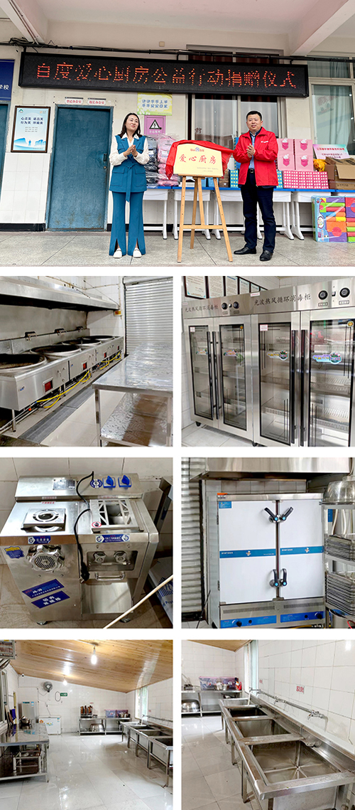 當天捐贈儀式上,首屏百度營銷(南京)服務中心與峨山小學共同為百度愛心廚房揭牌。本次公益行動中百度捐贈愛心善款,用于搭建百度愛心廚房,購置全新的廚房設備,包括大鍋灶、工作臺、絞肉機、洗菜池、消毒柜、消洗池、蒸飯車等20余臺設備。目前,所有捐贈設備已經(jīng)使用,為孩子們供應可口的飯菜。