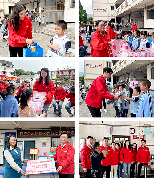 用行動履行使命、用愛心點亮希望,此次公益行動得到了南京愛心企業(yè)的參與,現(xiàn)場愛心企業(yè)為學校捐贈愛心助學物資。其中首屏集團捐贈的愛心大禮包及生活物資、江蘇臻宇律所捐贈的運動器材及兒童玩具等,為學校和孩子們送去一片溫暖。
